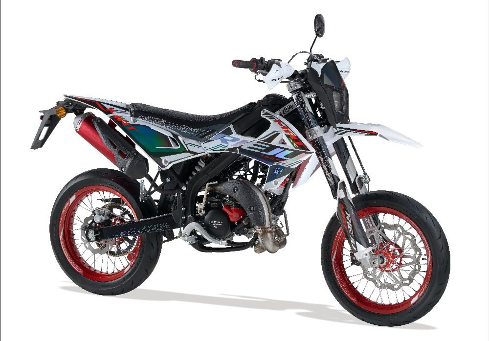 La nueva Rieju MRT 50 SM Trophy Mirage irrumpe con más personalidad que nunca para llevar la experiencia supermotard 50 cc a un nuevo nivel. Mantiene intacta su esencia deportiva, pero estrena una imagen renovada que la convierte en una edición especial única, marcada por un diseño inconfundible y lleno de carácter.